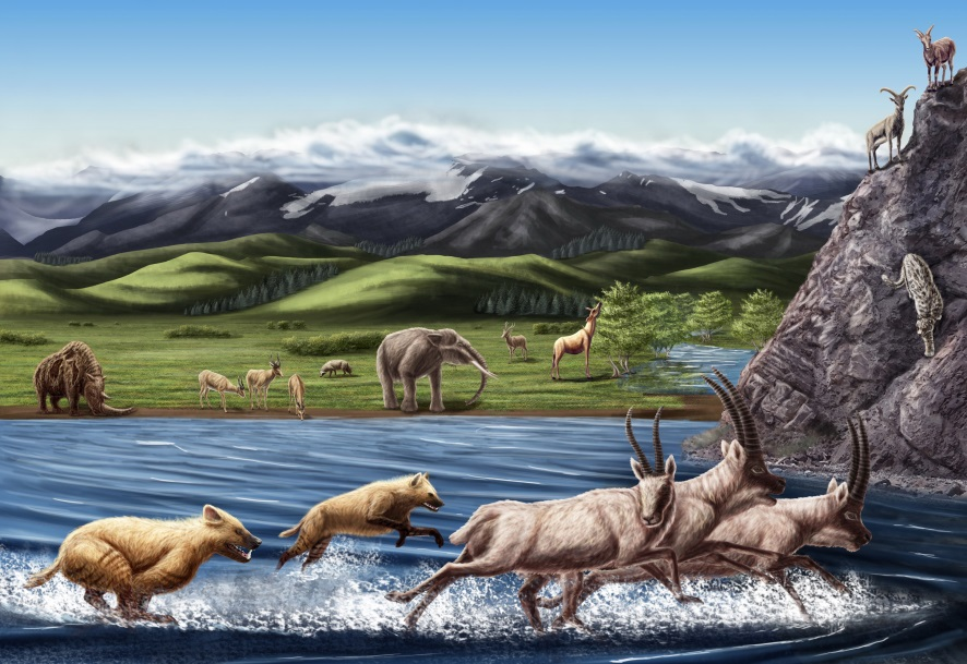 西藏札達(dá)盆地上新世哺乳動(dòng)物群生態(tài)復(fù)原圖。(中國科學(xué)院古脊椎所供圖) 中國的新近紀(jì)年代地層系統(tǒng)分為中新統(tǒng)的謝家階、山旺階、通古爾階、灞河階、保德階5個(gè)階,以及上新統(tǒng)的高莊階和麻則溝階2個(gè)階。研究提出,在青藏高原新生代陸相地層的劃分對比和測年標(biāo)定上,哺乳動(dòng)物化石起到非常重要的作用。 “近些年在青藏高原新生代盆地發(fā)現(xiàn)了豐富的哺乳動(dòng)物化石,并且東亞地區(qū)許多哺乳動(dòng)物首現(xiàn)屬出現(xiàn)在青藏高原及其周邊地區(qū),這使得古哺乳動(dòng)物學(xué)家很容易對化石依據(jù)其所處的演化階段進(jìn)行時(shí)間排序。結(jié)合高分辨率的古地磁測年,可提高新近紀(jì)青藏高原地質(zhì)地層年代的測量精度。”鄧濤說。 該研究將青藏高原及其鄰區(qū)的新生代盆地劃分為5個(gè)地層區(qū),即南疆-西昆侖區(qū)、柴達(dá)木-祁連-西秦嶺區(qū)、羌塘區(qū)、滇西-川西區(qū)、岡底斯-喜馬拉雅-西瓦立克區(qū),并可進(jìn)一步細(xì)分為次一級的地層小區(qū)。在生物地層和磁性地層的約束下,以地質(zhì)年代為框架,青藏高原及其周邊各地層分區(qū)的巖石地層單位得到精細(xì)對比。