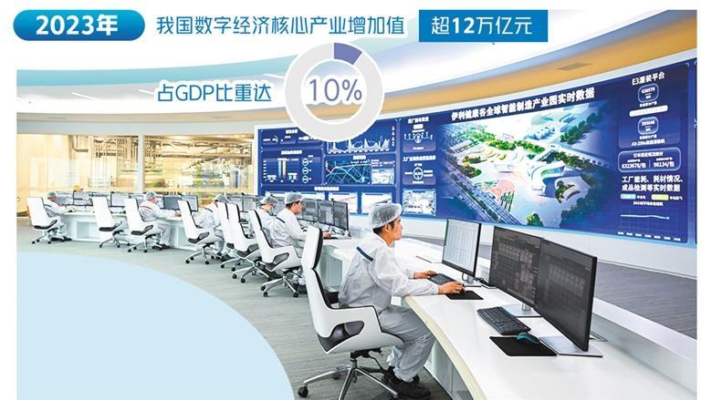2023年,我國(guó)數(shù)字經(jīng)濟(jì)核心產(chǎn)業(yè)增加值超過(guò)12萬(wàn)億元,占GDP比重達(dá)10%。今年前5個(gè)月,軟件業(yè)務(wù)收入超4.93萬(wàn)億元,同比增長(zhǎng)11.6%;信息技術(shù)服務(wù)收入3.33萬(wàn)億元,同比增長(zhǎng)12.9%?!拔覀冎С峙嘤艘慌|(zhì)量評(píng)價(jià)、資產(chǎn)評(píng)估、交易撮合等數(shù)據(jù)服務(wù)商,數(shù)字經(jīng)濟(jì)產(chǎn)業(yè)生態(tài)不斷豐富?!痹谌涨芭e辦的2024全球數(shù)字經(jīng)濟(jì)大會(huì)上,工業(yè)和信息化部副部長(zhǎng)辛國(guó)斌說(shuō)。