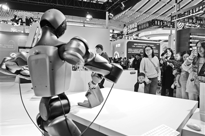 11月6日,觀眾在2025年世界互聯(lián)網(wǎng)大會(huì)“互聯(lián)網(wǎng)之光”博覽會(huì)現(xiàn)場觀摩人形機(jī)器人疊衣服。新華社記者 黃宗治 攝