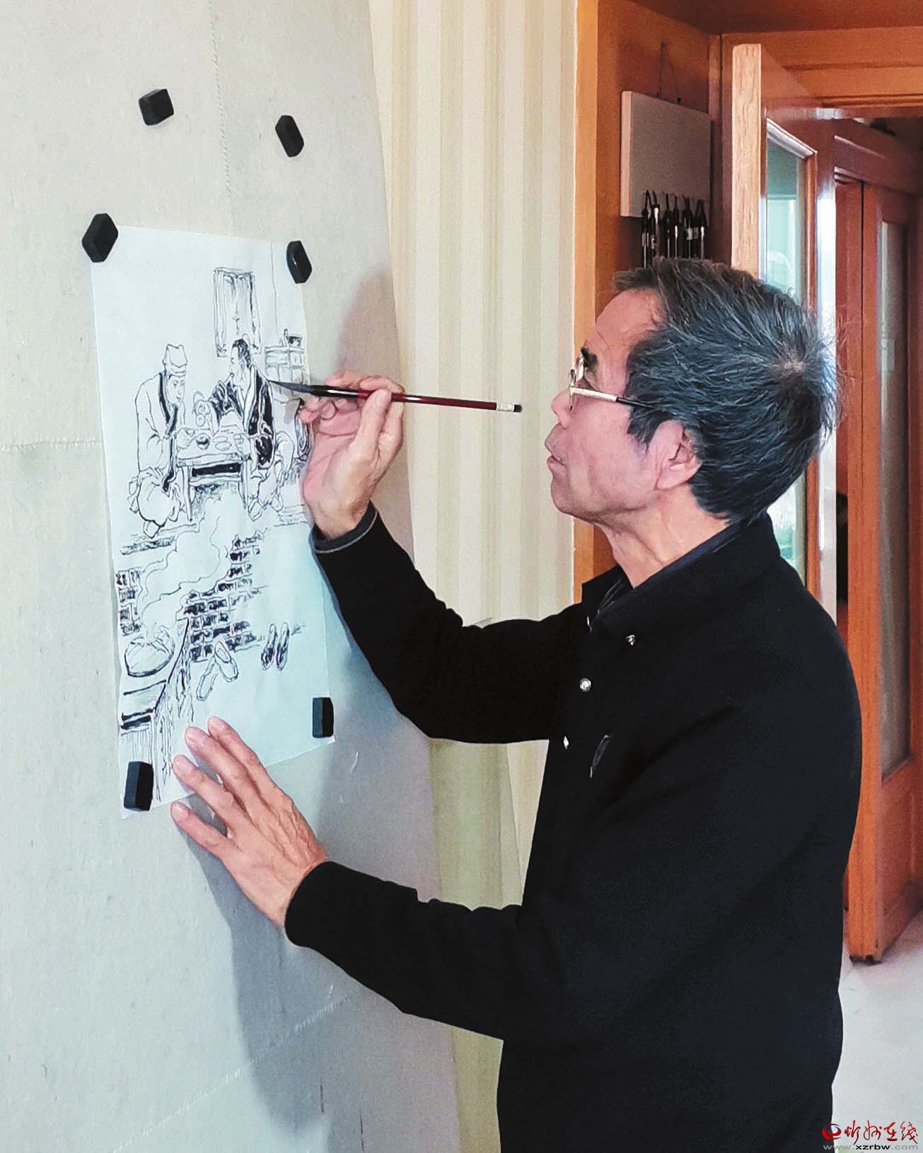 “夢圓畫室”的主理人叫艾吉虎,正如他的視頻號名字一樣,繪畫是他人生的最大愛好和情感寄托。早些年,艾吉虎曾利用繪畫專長從事過玻璃雕畫,隨著玻璃雕畫在裝修行業(yè)的沒落,艾吉虎轉(zhuǎn)戰(zhàn)其他行業(yè),但兜兜轉(zhuǎn)轉(zhuǎn)離不開他的繪畫愛好。在原平市民俗文化研究會當(dāng)美編期間,艾吉虎開始嘗試“小人書”的繪畫創(chuàng)作,沒承想,幾個插圖畫出來,得到許多人的熱烈追捧,這激發(fā)了他繼續(xù)創(chuàng)作的熱情。