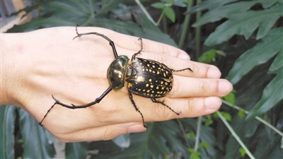 “這種甲蟲的發(fā)現(xiàn)地都是生態(tài)環(huán)境很好的茂密叢林,它的出現(xiàn)可以看做是自然環(huán)境保護得當?shù)囊粋€標志?!壁w力說,體形對比之下,格彩臂金龜?shù)捏w形比陽彩臂金龜要小一些。陽彩臂金龜一般的體長可以達到7厘米,而格彩臂金龜?shù)捏w長只有5厘米多。
