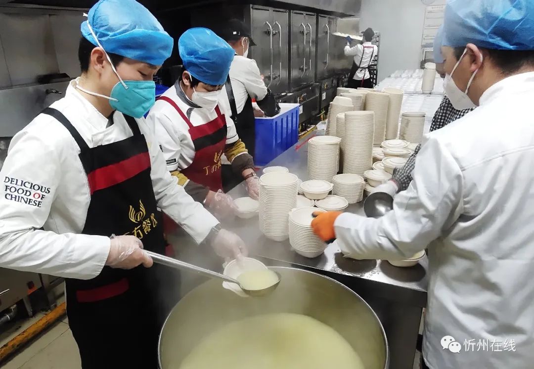 紅燒肉、過油肉、涼拌菜……12月2日下午,忻州丁方文化餐飲管理有限公司的廚師們正在有序忙碌著,一道道剛出鍋的飯菜被分餐員迅速分裝、打包、裝箱,他們要趕在18點(diǎn)之前送往忻州市級(jí)方艙醫(yī)院。