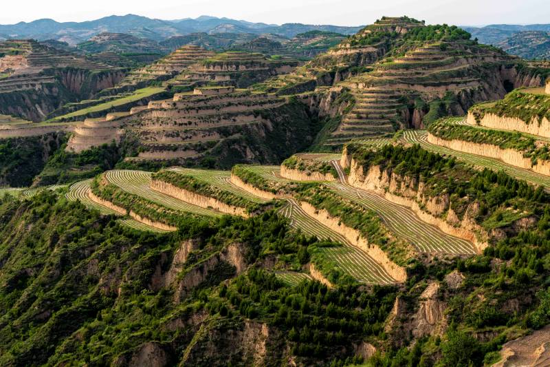 為了實現(xiàn)耕地有效利用,從2010年起,永和縣在芝河源頭的高山上開始了“坡改梯田”工程。