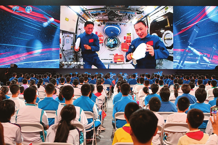 9月21日下午,“天宮課堂”第四課在中國空間站開講,新晉“太空教師”景海鵬、朱楊柱、桂海潮為廣大青少年帶來一場精彩的太空科普課,這是中國航天員首次在夢天實(shí)驗(yàn)艙內(nèi)進(jìn)行授課。