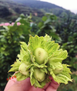 常安鄉(xiāng)龍莊溝村氣候溫潤、晝夜溫差大、光照充足,適宜大果榛子種植。2013年,瞄準(zhǔn)榛子的利好發(fā)展空間,土生土長的常安鄉(xiāng)人閆士文成立了山西榛實(shí)農(nóng)林科技開發(fā)有限公司,流轉(zhuǎn)村民300畝土地,種植大果榛子。榛子有“堅(jiān)果之王”的美譽(yù),不但果仁營養(yǎng)豐富口感好,果殼、果苞、葉片也可以用來制栲膠。榛子樹一般3-4年開始結(jié)果,7年以上進(jìn)入盛果期,壽命可達(dá)50年以上。堅(jiān)持了7年后,榛子終于進(jìn)入了盛果期??粗Ao枬M的榛子,閆士文開心不已。