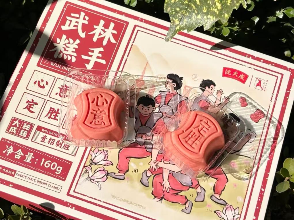 非遺傳承人們也不再滿足于“守住老味道”,更在努力跨界融合、推陳出新。沈大成最新推出的“武林糕手”心意定勝糕,內(nèi)里仍是銀錠造型、香甜軟糯的糕點(diǎn),外包裝設(shè)計(jì)則引入了國家級非遺項(xiàng)目盧氏心意拳的招式形象,受到消費(fèi)者的歡迎。