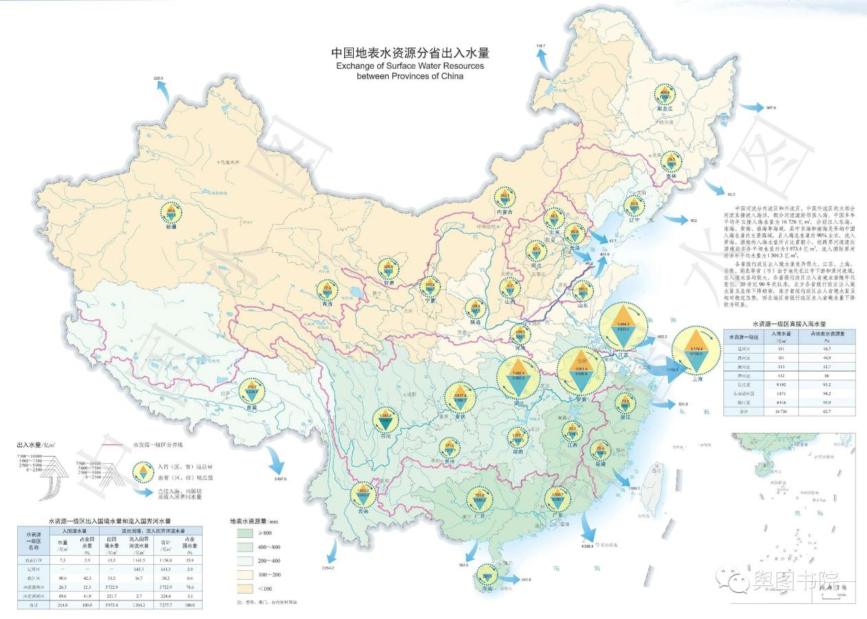 中國地表水資源分省出入量 源自:公眾號輿圖書院