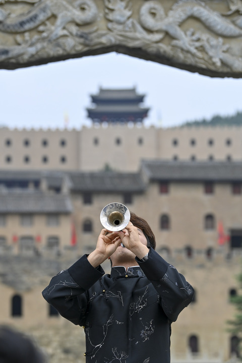 演員在湘峪古堡進行民樂表演(7月9日攝)。新華社記者 楊晨光 攝