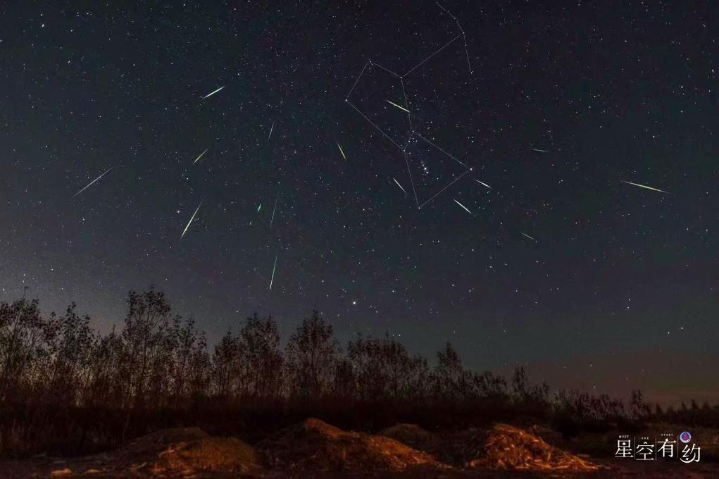 2020年10月21日,在黑龍江大慶拍攝的獵戶座流星雨(多張疊加)。(劉成山 攝)