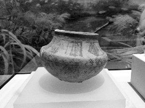 高淳博物館的二樓是一個“通史”展,從6300年前薛城聚落開始說起。彩陶罐、黑斑玉鐲、黑陶杯、螺螄、貝殼……這些“寶貝”都是從高淳薛城遺址出土的,它們已經(jīng)有6300歲了。這些陶器,造型優(yōu)美,尤其是黑陶杯,造型堪稱時尚,杯口還特意設(shè)置了喝水的凹槽。