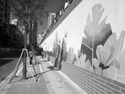 黃色、粉色的花,挺著碧綠的莖稈,像亭亭玉立的少女眺望著遠(yuǎn)方;寬大的芭蕉葉,有兩米高……走在文化墻邊,也能有漫步公園的感覺。太原市迎澤區(qū)迎澤街道青年路一社區(qū)東陵里,百米長的手繪文化墻剛一亮相,就成了周邊居民的“打卡”地。