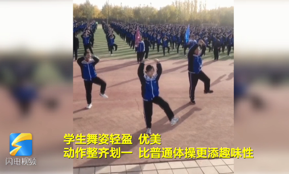 齊魯網·閃電新聞10月21日訊 近日,甘肅敦煌中學一段學生課間操跳敦煌舞的視頻走紅網絡。學生們舞姿輕盈、優(yōu)美,動作整齊劃一,課間操音樂動感十足。敦煌中學黃老師稱,敦煌舞課間操是根據敦煌壁畫上的飛天舞,由敦煌中學的老師們進行二次創(chuàng)作的,同學們跳敦煌舞課間操已有四、五年了。課間操有著當地敦煌莫高窟文化元素,網友們紛紛表示“好美,想學”。