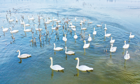 除了濕地景區(qū),當?shù)卣⒕用?、志愿者等也對天鵝這個“貴客”倍加呵護。近年來,芮城縣在黃河濕地實施了1000畝濕地恢復工程,成立了黃河濕地保護領導組、濕地保護管理站,組建了巡護隊伍,同時進村入戶加大宣傳力度,提高了居民保護意識。