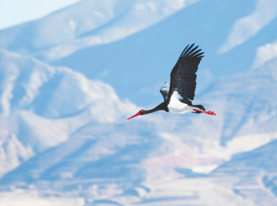 每年開春,總會有不少省內(nèi)外游客慕名來到靈丘縣,來目睹世界瀕危珍禽、國家一級保護動物黑鸛的風采。步履輕盈潛行捕食、由低向高展翅盤旋,白腹黑衣、紅嘴赤腳的黑鸛與藍天白云相映成趣,成為峭壁與綠水間的一道亮麗景觀。