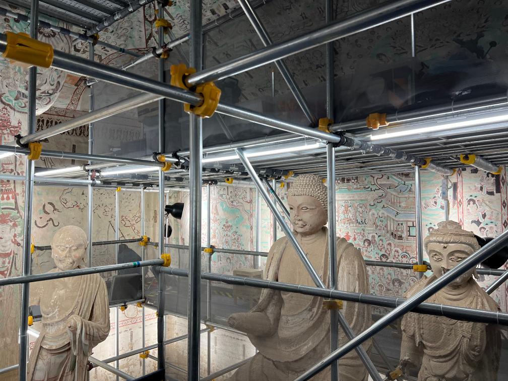 第55窟修復現(xiàn)場。新華社記者徐壯攝