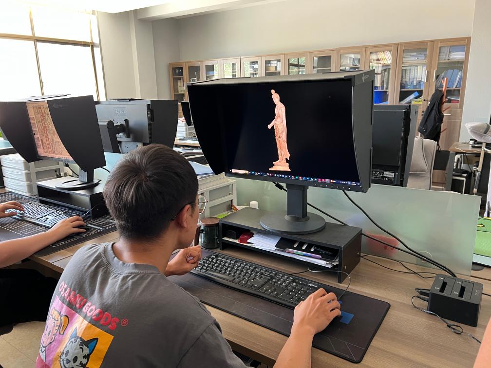 工作人員對彩塑進行三維重建。新華社記者徐壯攝