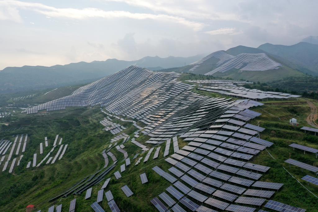 7月12日,山西省芮城縣學(xué)張鄉(xiāng)光伏電站(無人機照片)。新華社記者 詹彥 攝