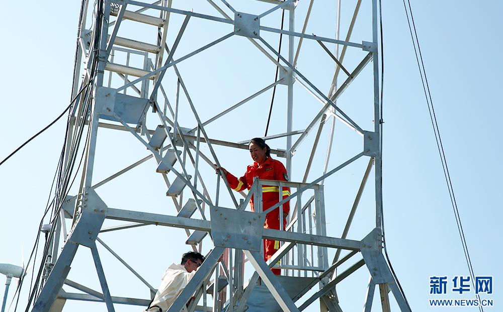 李穎在攀爬瞭望塔(拍攝于8月12日)。新華網石毅 攝