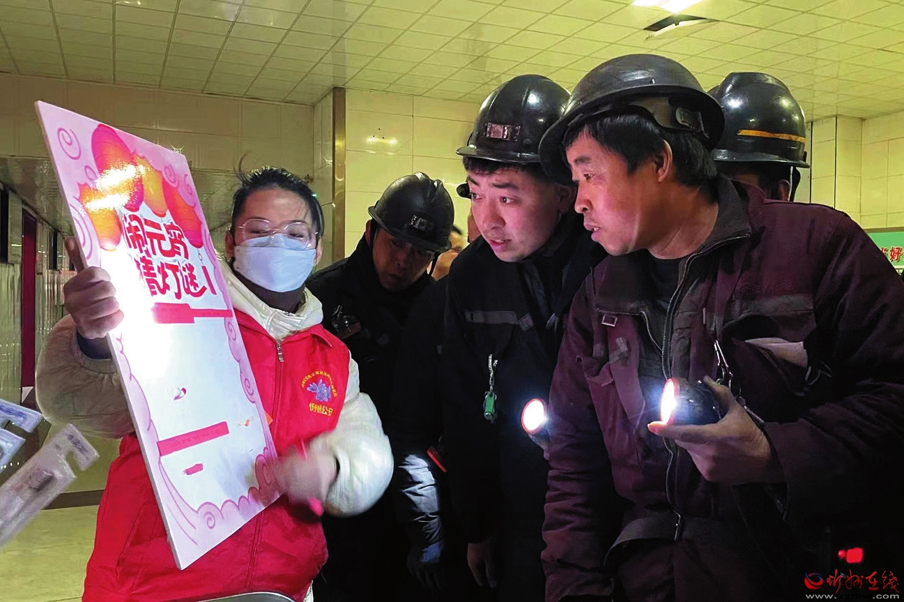溫暖送元宵,幸?!耙患胰恕?。女工家屬協(xié)管員們早早來到井口工作站,為出入井的職工準備好寓意著平安幸福團圓的湯圓、紅腰帶、靴襪、蘋果等慰問品,祝福他們平安歸來。