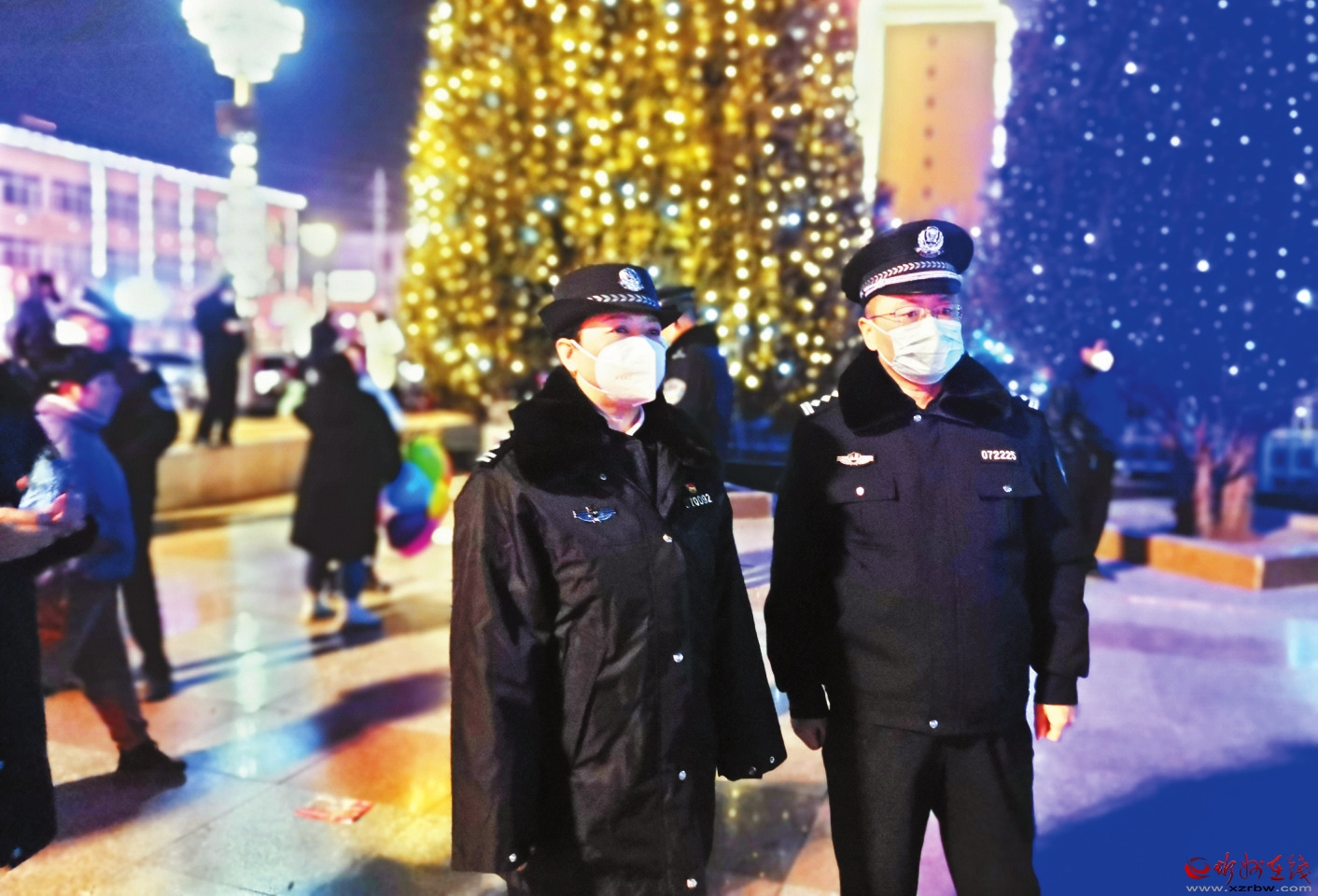 元宵節(jié)期間,五寨縣公安局領(lǐng)導(dǎo)一線值勤。 谷寶龍 攝
