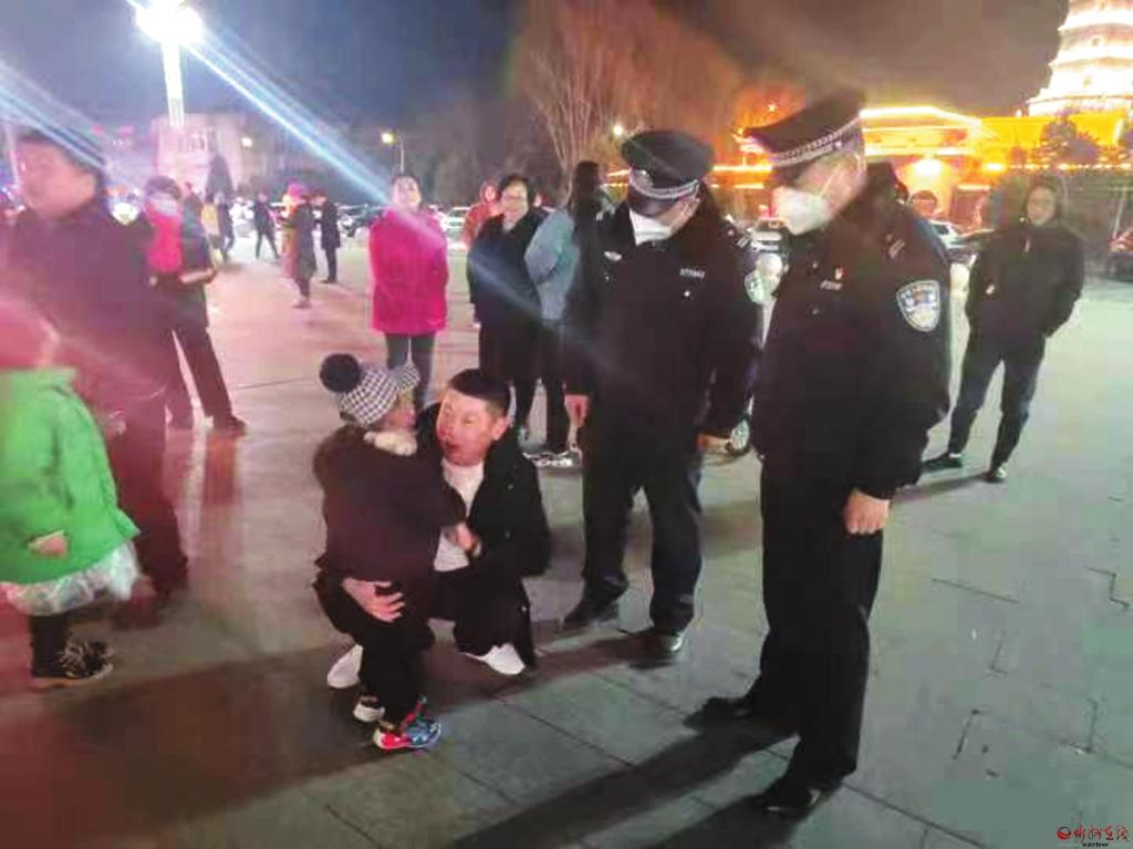 春節(jié)期間,五寨縣公安民警及時為走失兒童尋找家人。 谷寶龍 攝