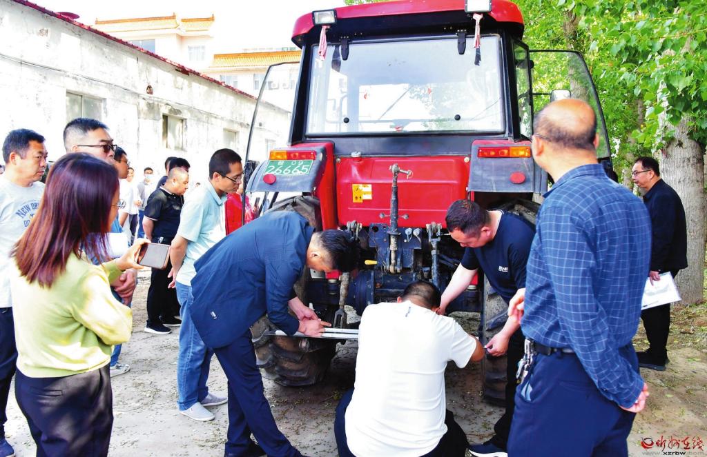 近日,市農(nóng)業(yè)農(nóng)村局聘請(qǐng)專家深入農(nóng)村進(jìn)行農(nóng)機(jī)技術(shù)輔導(dǎo)確保操作規(guī)范,安全生產(chǎn)。圖為山東科技大學(xué)專家在檢測(cè)農(nóng)業(yè)機(jī)械。(孟 端攝