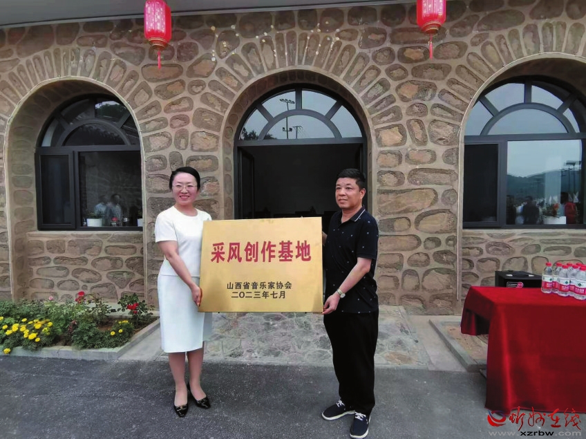 省音協(xié)常務(wù)副主席白云,原平市委常委、宣傳部部長張志男為采風(fēng)創(chuàng)作基地愛木圖景區(qū)授牌。