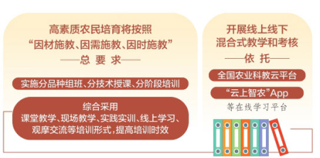 高素質(zhì)農(nóng)民培育將按照“因材施教、因需施教、因時施教”總要求,實施分品種組班、分技術(shù)授課、分階段培訓(xùn),綜合采用課堂教學(xué)、現(xiàn)場教學(xué)、實踐實訓(xùn)、線上學(xué)習(xí)、觀摩交流等培訓(xùn)形式,提高培訓(xùn)時效。依托全國農(nóng)業(yè)科教云平臺、“云上智農(nóng)”App等在線學(xué)習(xí)平臺,開展線上線下混合式教學(xué)和考核。在全省選擇2個縣、每個縣遴選100人,共計200人實施學(xué)用貫通培養(yǎng)。試點由縣級農(nóng)廣校牽頭會同承擔試點任務(wù)的有關(guān)單位和機構(gòu)具體實施,培育期兩年。