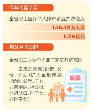 我省自2022年7月實施職工醫(yī)保個人賬戶家庭共濟以來,不斷擴展家庭共濟范圍,先后將醫(yī)療費用共濟擴大到繳納居民醫(yī)保共濟、統(tǒng)籌區(qū)內(nèi)共濟擴大到省內(nèi)共濟。此次又將共濟范圍由直系親屬擴大至近親屬,職工醫(yī)保個人賬戶家庭共濟政策得到進一步升級。
