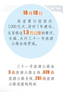 三個(gè)一號(hào)旅游公路由3條旅游公路主線、420條旅游公路支線、281條旅游公路連接線構(gòu)成。全線貫通既是建設(shè)時(shí)期的結(jié)束,也意味著全線聯(lián)網(wǎng)的開始,在三晉大地上,將唱出轉(zhuǎn)型發(fā)展的黃河大合唱,奏響旅游強(qiáng)省的長(zhǎng)城交響樂,書寫鄉(xiāng)村振興的太行抒情詩。