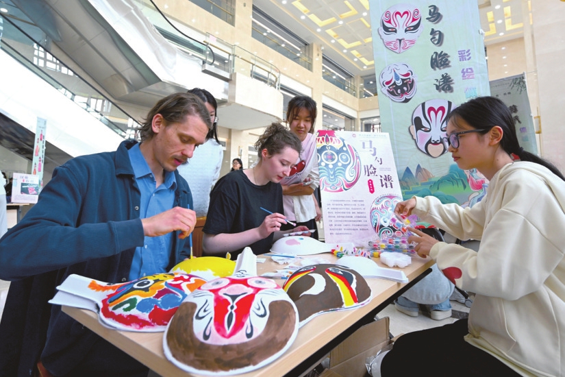 4月22日,山西財經(jīng)大學舉辦傳統(tǒng)文化嘉年華活動,外國嘉賓饒有興趣地體驗馬勺臉譜彩繪。楊晨玉攝