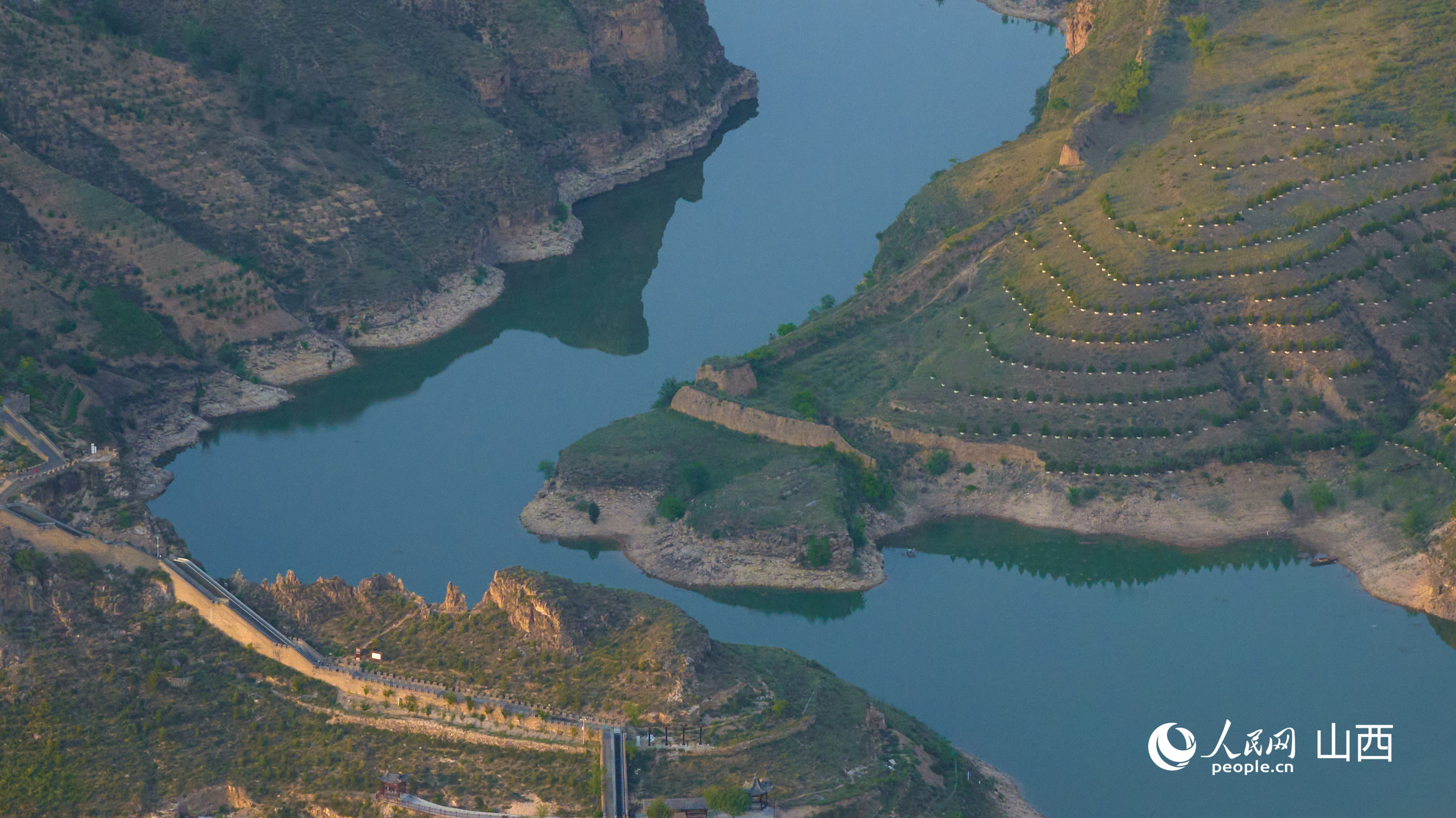 偏關(guān)老牛灣,樹木并肩而立守護黃河安瀾。人民網(wǎng) 張超寧攝