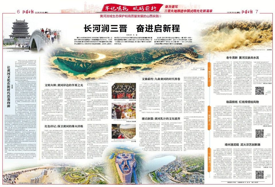 在山西,古老文明與現(xiàn)代生活交融共生,一幅“保護(hù)—傳承—弘揚(yáng)”的壯美畫卷正徐徐展開。正如1936年紅軍東征時(shí),毛澤東面對黃河壯景寫下“數(shù)風(fēng)流人物,還看今朝”——如今,這片土地正以同樣的豪情,續(xù)寫新時(shí)代黃河文化的璀璨篇章。