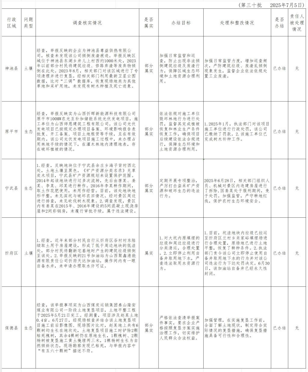 中央生態(tài)環(huán)境保護督察組群眾信訪舉報轉辦和邊督邊改公開情況一覽表(第三十批)