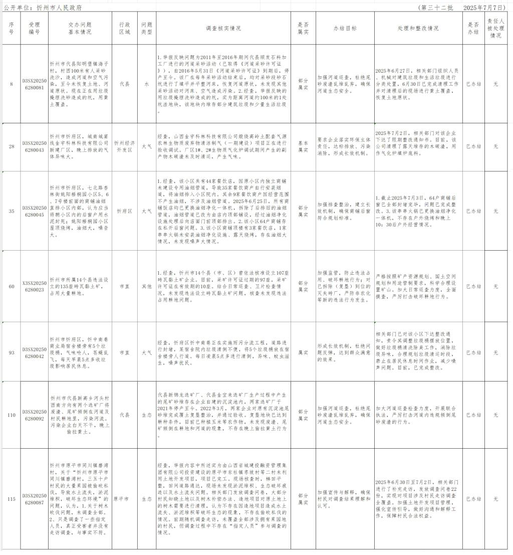 中央生態(tài)環(huán)境保護督察組群眾信訪舉報轉(zhuǎn)辦和邊督邊改公開情況一覽表(第三十二批)