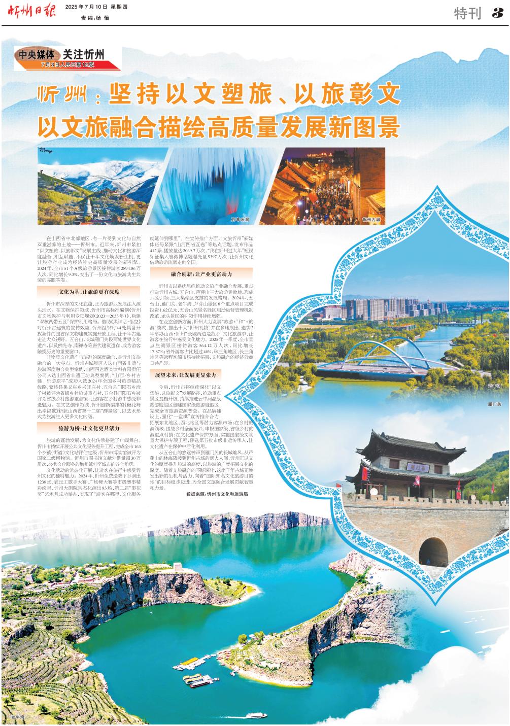 在山西省中北部地區(qū),有一片受到文化與自然雙重滋養(yǎng)的土地——忻州市。近年來,忻州市緊扣“以文塑旅、以旅彰文”發(fā)展主線,推動文化和旅游深度融合、相互賦能,不僅讓千年文化煥發(fā)新生機,更讓旅游產(chǎn)業(yè)成為經(jīng)濟社會高質量發(fā)展的新引擎。2024年,全市51個A級旅游景區(qū)接待游客2894.86萬人次,同比增長9.3%,交出了一份文化與旅游共生共榮的亮眼答卷。