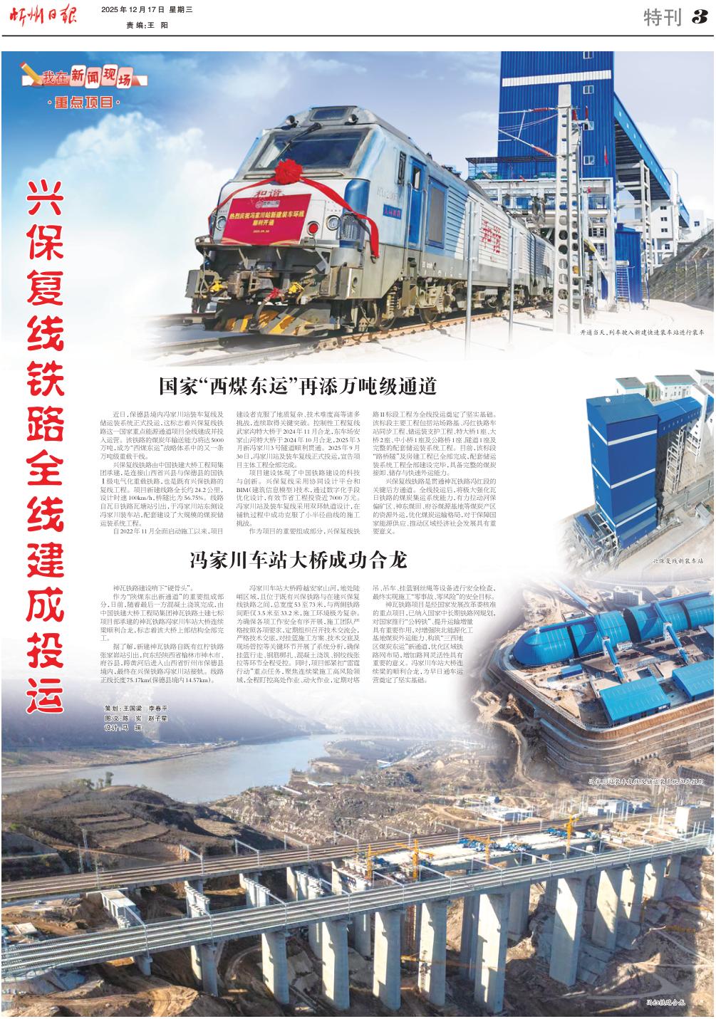 近日,保德縣境內(nèi)馮家川站裝車復(fù)線及儲(chǔ)運(yùn)裝系統(tǒng)正式投運(yùn),這標(biāo)志著興保復(fù)線鐵路這一國(guó)家重點(diǎn)能源通道項(xiàng)目全線建成并投入運(yùn)營(yíng)。該鐵路的煤炭年輸送能力將達(dá)5000萬噸,成為“西煤東運(yùn)”戰(zhàn)略體系中的又一條萬噸級(jí)重載干線。