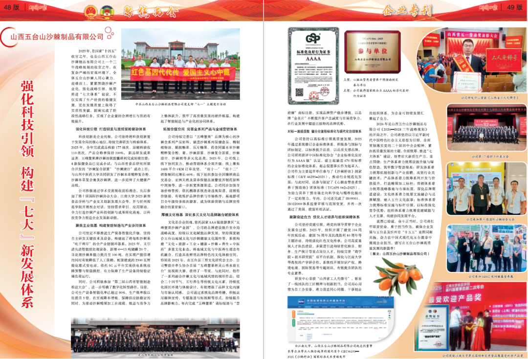 文化是企業(yè)的魂,依托國(guó)家AAA級(jí)旅游景區(qū)“五峰慧果沙棘產(chǎn)業(yè)園”,公司將品牌建設(shè)提升至全局戰(zhàn)略高度,持續(xù)以文化賦能品牌發(fā)展,堅(jiān)持深度融合五臺(tái)山地域文化與沙棘健康文化屬性等,系統(tǒng)構(gòu)建“文化+旅游+工業(yè)+健康+沙棘+養(yǎng)生+中醫(yī)藥”多重文化業(yè)態(tài)。將地域文化與中醫(yī)養(yǎng)生理念有機(jī)融合,打造具有鮮明品牌特色的文化體驗(yàn)空間。特別是2025年,由五臺(tái)縣三晉文化研究會(huì)主辦、公司贊助并牽頭協(xié)辦首屆“五峰慧果杯靈山秀水萌五臺(tái)”短視頻大賽,獲得了一等獎(jiǎng),與此同時(shí),創(chuàng)作了一系列融合沙棘文化與地域風(fēng)情的視聽(tīng)作品;結(jié)合二十四節(jié)氣、五行養(yǎng)生等傳統(tǒng)文化元素,持續(xù)優(yōu)化園區(qū)環(huán)境與體驗(yàn)設(shè)計(jì),有效增強(qiáng)了品牌文化內(nèi)涵與市場(chǎng)認(rèn)同感。 公司通過(guò)系統(tǒng)化品牌傳播,積極運(yùn)用媒體宣傳、專題報(bào)道與短視頻等形式,持續(xù)提升品牌影響力。年內(nèi)完成“五峰慧果”商標(biāo)續(xù)展與“晉府棘”商標(biāo)注冊(cè),實(shí)現(xiàn)品牌資產(chǎn)穩(wěn)步增值,以品牌“金名片”不斷提升客戶忠誠(chéng)度與市場(chǎng)競(jìng)爭(zhēng)力,在行業(yè)發(fā)展中塑造出獨(dú)特的品牌優(yōu)勢(shì)。