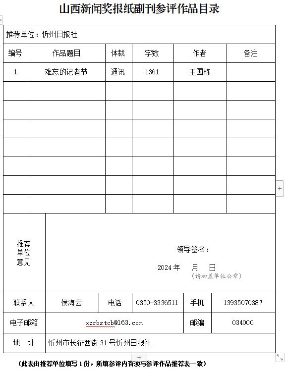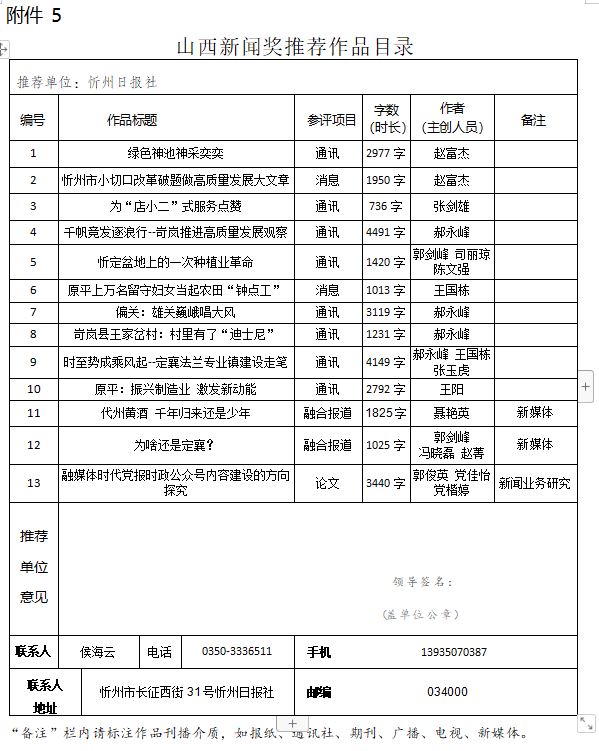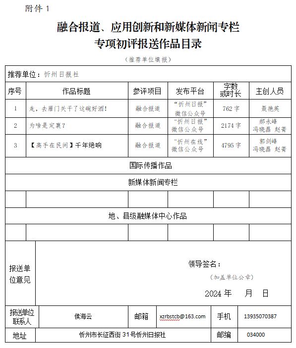 經(jīng)忻州日報(bào)社編委會研究決定,以下作品擬推薦申評第33屆山西新聞獎,現(xiàn)予以公示。有反對意見者,請將反對意見書面報(bào)至統(tǒng)計(jì)考核部。