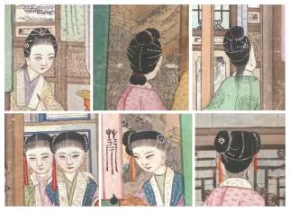 《大觀(guān)園圖》小姐、丫鬟的不同發(fā)型前后面,上列為小姐,下列為丫鬟