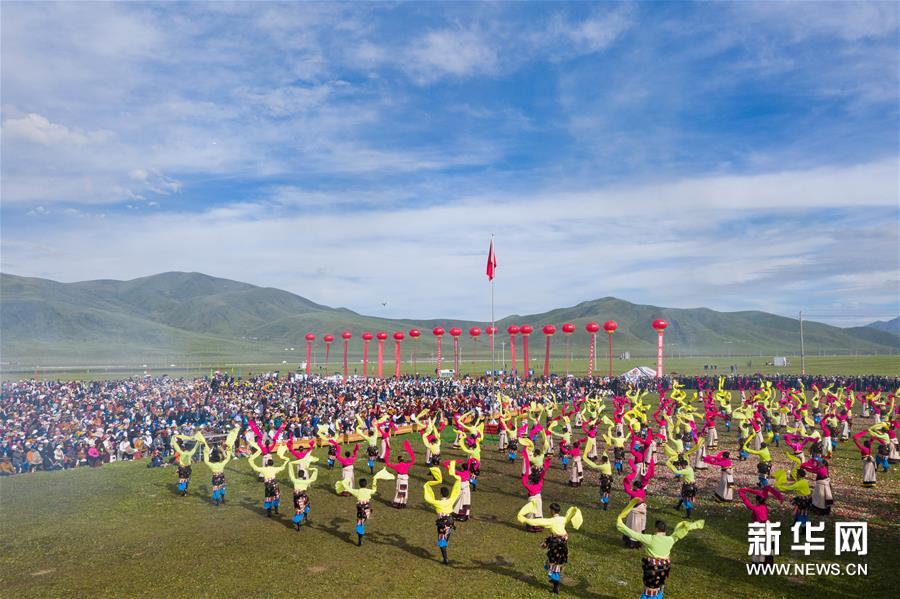 8月6日,當(dāng)?shù)厝罕娫诒硌菸璧浮睹利惖慕瘃R色達》。8月6日至8日,四川甘孜山地文化旅游節(jié)系列活動之一的色達金馬文化節(jié)在四川省色達縣扎青塘草原舉辦。當(dāng)?shù)厝罕娚碇?jié)日盛裝載歌載舞、歡聚一堂,文藝表演、賽馬、傳統(tǒng)服飾展演、非遺展示等活動精彩紛呈。 近幾年,當(dāng)?shù)卣罅ν苿游穆谩⑥r(nóng)旅、牧旅融合發(fā)展,全域旅游豐富多彩,成為當(dāng)?shù)孛撠毐夹】档闹匾ナ?。新華社記者 江宏景 攝