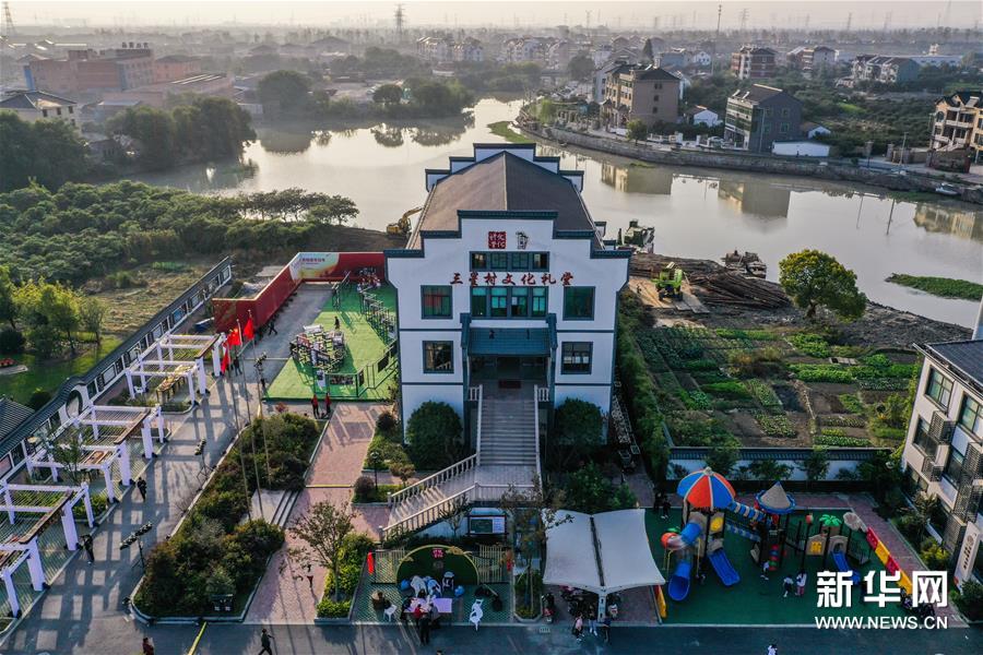 11月7日,在杭州市余杭區(qū)塘棲鎮(zhèn)三星村文化禮堂前,村民在展示傳統(tǒng)技藝“翻絲綿”(無人機(jī)照片)。當(dāng)日,浙江省杭州市余杭區(qū)農(nóng)村文化禮堂“百村千場”聯(lián)盟走親在塘棲鎮(zhèn)三星村文化禮堂正式啟動。活動現(xiàn)場組織了米塑、滾燈、鰲魚燈、高蹺、掮爐子等余杭非遺技藝走親展示以及塘棲鎮(zhèn)禮堂聯(lián)盟原創(chuàng)節(jié)目展演。 從2020年3月開始,浙江省杭州市余杭區(qū)塘棲鎮(zhèn)以“小康路上我們一起曬幸?!睘橹黝},啟動美麗鄉(xiāng)村禮堂文化節(jié)活動,開展“幸福接力賽”、文化“云”講課等一系列基層文化活動。塘棲鎮(zhèn)還創(chuàng)新推進(jìn)了“禮堂聯(lián)盟”結(jié)對互促工作,與區(qū)級文化團(tuán)隊(duì)結(jié)對共建,使鄉(xiāng)村文化禮堂“活”起來,全面提升鄉(xiāng)村百姓的幸福感。新華社記者 徐昱 攝