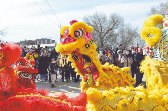 2月19日,一場(chǎng)群眾文化主題活動(dòng)在內(nèi)蒙古自治區(qū)呼和浩特市回民區(qū)莫尼山非遺小鎮(zhèn)舉行,吸引許多游客體驗(yàn)觀賞,感受傳統(tǒng)文化的魅力。圖為在呼和浩特市回民區(qū)莫尼山非遺小鎮(zhèn),民間藝人表演舞獅。 (新華社發(fā) 王 正 攝)