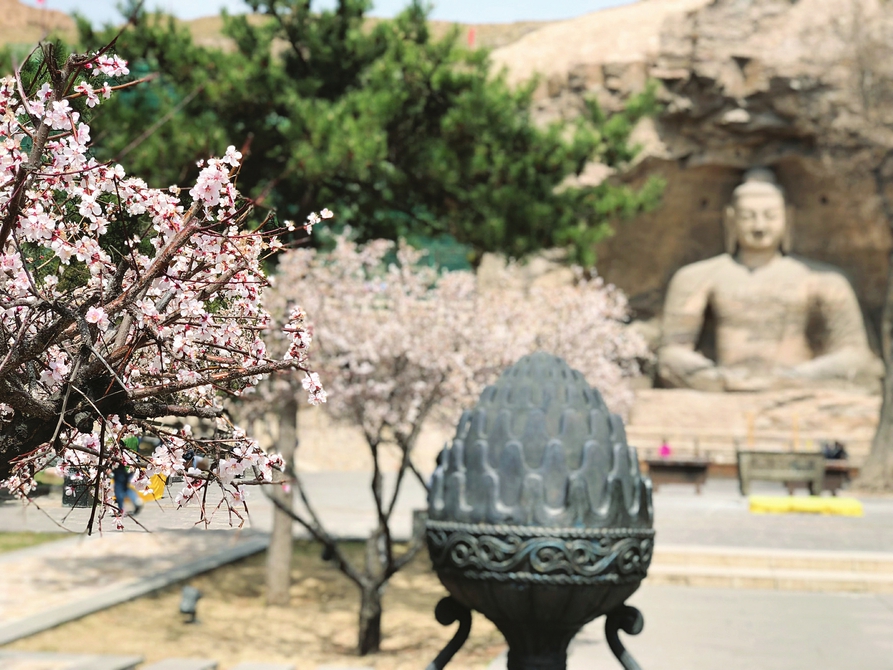 云岡石窟第20窟前一片春意盎然,預(yù)示著“數(shù)字云岡”的美好前景。圖片由受訪者提供