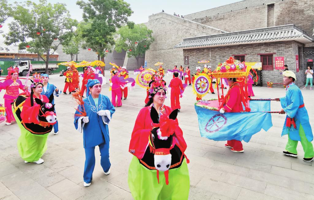 忻州“跑驢”俗稱“兜毛驢”,是民間舞蹈之一。伴奏以歡快、喜慶的八音為主,或可現(xiàn)場(chǎng)用嗩吶、小鼓、大鈸和小鈸等伴奏。“跑驢”表演多以一男一女為一組(也有女扮男裝的),表演節(jié)目有“夫妻探親”“回娘家”“趕集路上”等。其中以小媳婦兒回娘家和表現(xiàn)農(nóng)村老漢和農(nóng)村老大娘的故事情節(jié)較為普遍。表演時(shí)小媳婦“騎驢”磨磨蹭蹭、小伙子趕“驢”風(fēng)情萬(wàn)種,運(yùn)用舞蹈動(dòng)作夸張地演繹驢的倔強(qiáng)和趕驢者的執(zhí)著?!芭荏H”的舞步很多,有平閃步、上山步、下山步、小跑步、驚驢步、后踢步、過河步等。表演形式有踩四腳、卷白菜、龍盤柱等,表演者即興使用,不受限制。演員相互配合,表演動(dòng)作夸張,“騎驢上路”“騎驢下坡”“騎驢過河”“失蹄臥水”“毛驢抖水”“驢失前蹄”“毛驢跳躍”等舞姿,生動(dòng)活潑、詼諧幽默、趣味無(wú)窮,備受歡迎。(市文化館供稿)