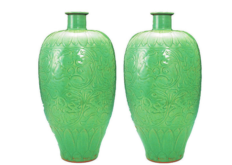 3年前,我在一次拍賣會上拍到了一件青瓷蓮花尊,尊高59厘米,口徑13.1厘米,長頸、平唇、喇叭口、橢圓腹、高圈足底,全器飾青釉,釉薄而均勻,釉色青中泛黃,光亮晶潤,雕飾蓮花瓣、弦紋、粗繩紋、寶相花紋,采用刻線、模印、堆塑等裝飾手法,高雅大氣,華麗精美,完美融合了古代佛教文化與陶瓷文化。