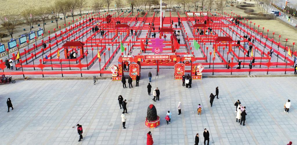 伴著舒緩的音樂,一撥一撥的市民和游客穿行于燈陣中,或觀賞彩燈,或擊鼓祝福,或拍照留念。鴻運門、豐收門、吉祥門、月老門、子孫門、狀元門、平安門、財源門、得勝門,每一道彩門都給大家以美好的祝福和期盼。使人們對未來生活充滿希望和憧憬,激發(fā)出奮力前行的勇氣和力量。