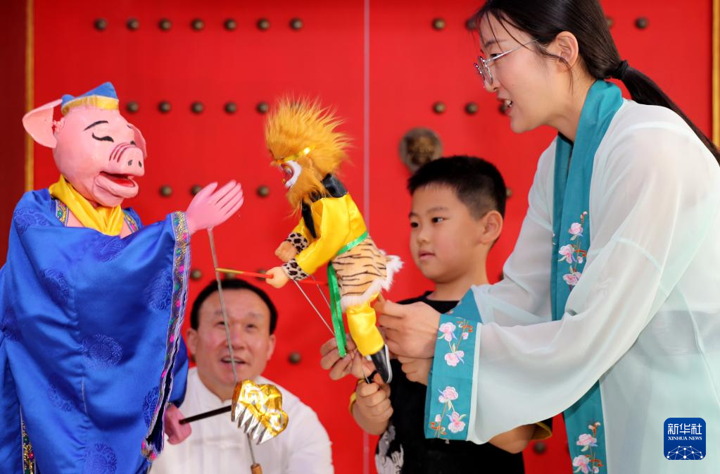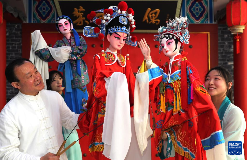 山東萊西木偶藝術(shù)有著兩千多年的歷史,新一代傳承人姜玉濤根據(jù)時(shí)代特點(diǎn)和大眾需求,改革木偶制作工藝、創(chuàng)新演出劇目,在劇目中融入童話、動(dòng)漫、神話等元素,讓木偶表演形式更加貼近當(dāng)代生活,得到年輕人的喜愛。近年來,姜玉濤和他的團(tuán)隊(duì)多次開展進(jìn)校園、進(jìn)工地、進(jìn)社區(qū)、進(jìn)景區(qū)活動(dòng),古老的木偶藝術(shù)煥發(fā)出勃勃生機(jī)。新華社發(fā)(張進(jìn)剛 攝)