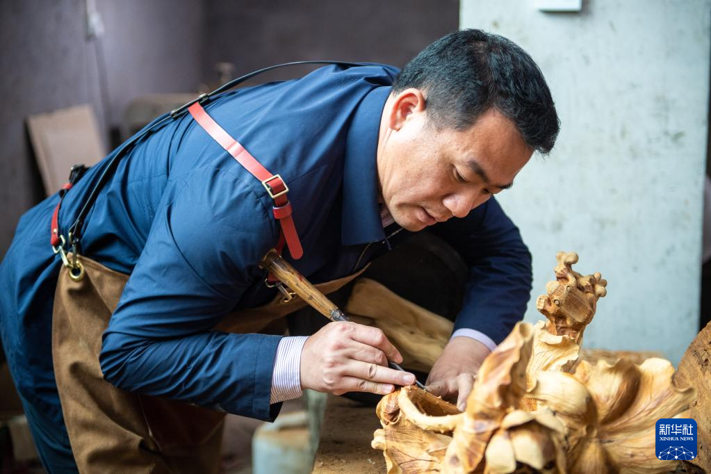 洞口木雕已被正式列入湖南省省級(jí)非物質(zhì)文化遺產(chǎn)名錄,木雕產(chǎn)品遠(yuǎn)銷70多個(gè)國(guó)家和地區(qū)。新華社記者 陳思汗 攝