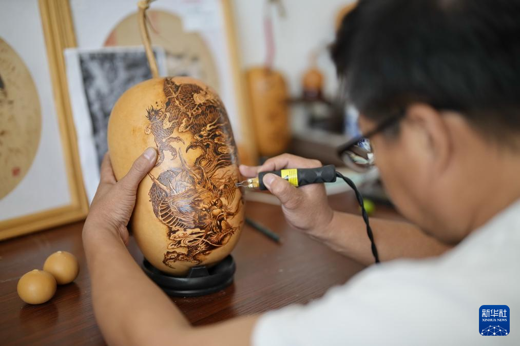 9月16日,烙畫藝人在玉田縣“非遺會客廳”工作室內(nèi)制作烙畫。